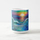Convide a calma do mar para dentro de sua casa com esta paisagem surreal, onde uma bela mistura de matizes azuis e ondas coloridas opais e jade encontram o calor de um pôr do sol sonhador.