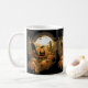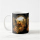 Noite de Halloween e a lua são cheios sobre a mancha de abóbora, onde um espantalho assiste sobre o distante campo de milho e um misterioso gato negro persegue um rato. Por Paxdomino