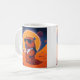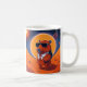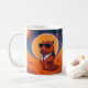 Uma caneca moderna engraçada com uma capybara no planeta Marte vestindo um terno e óculos de sol com o sol nas costas. Tumor de cozinha exclusivo.