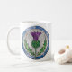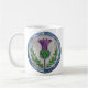 Um design que caracterize o emblema escocês do cardo como um painel do vitral.