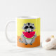 Arte de desenho animado comendo melancia aranha-do-mato em canecas com uma cor de fundo que pode ser personalizada