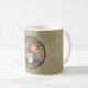 A imagem da caneca de café clássica é um fundo falso de burlap com viagem de selo da cena do Tennessee.