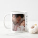 Uma caneca personalizada para pai com um poema doce editável, oferecendo um presente sincero perfeito para celebrar o vínculo especial entre o pai e o bebê. Este design de caneca personalizado apresenta uma foto de cada lado de um poema emocionante editável escrito da perspectiva de um bebê, expressando profundo amor e apreço pelo pai. A doce tipografia negra se destaca em relação a um clássico fundo branco, criando um olhar limpo e eterno. Ideal para Dia de os pais, Natal, aniversários, presentes de novo papai, ou lembretes diários de amor, esta caneca captura momentos emocionais em uma cuidadosa e fotopersonalizada vigilância que os pais apreciarão.