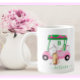 Um charmoso carrinho de golfe único — rosa e verde — feito com gosto — pronto para correr — café/caneca de chá — Este é um presente de excelente para todos os amantes de golfe — divertido / atraente / único. Personalize-o com as suas iniciais/monograma. Se tiver alguma pergunta sobre design ou uma solicitação especial, envie um email para: charmdesignstudio@rcn.com