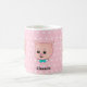 Um desenho animado de porco Chanchi bonito com bolinhas brancas em fundo rosa Nome Mug Chanchi pode ser personalizado. Um porco é um símbolo de abundância, prosperidade e bem-estar. Melhores Desejos!