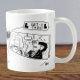 Cartoon instrutor ou examinador numa caneca. Ofereça uma ideia para um instrutor ou examinador de condução ou qualquer pessoa que trabalhe no aprendizado de dirigir, ensinando negócios. Imagem engraçada de um instrutor ou examinador que cuida de seus olhos enquanto o carro está viajando.