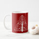 Personalize a Festiva Árvore de Natal Vermelha da Copa do Café de inverno com os nomes pessoais da noiva e do noivo e a data da cerimônia de casamento de dezembro para criar um dos mais simpáticos presentes ou presentes de guardas para recém-casados, damas de honra ou assistentes de noiva. Esta elegante caneca de café wintery personalizada apresenta um intrincado design de árvore de xmas branco sobre um fundo vermelho.