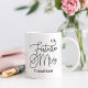 A caneca de café de noiva de noiva, moderna e casual, com a escrita de caligrafia negra, "Future Mrs", feminina, apresenta texto personalizado que pode ser personalizado com o sobrenome casado da noiva. Faz um presente perfeito para a noiva recém-noiva!