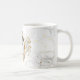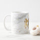O Beijo do Casal Real Harry e Meghan canecas com Coroa Real dourada falsa, também acentuada com fita de pérola rosa sobre mármore e cor DIY moderna, listras de coral e manchas de fundo dourado falso. Copyright © 2018 PixDezines.com™ e PixDezines™ em zazzle.com