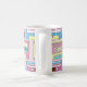 Caneca De Café Cassetes coloridas, padrão de fundo rosa.