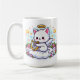 CUTE ANGEL CAT ILLUSTRATION - This charming design features a white cat playing a golden harp on a fluffy cloud. The cat has delicate angel wings and a sparkling halo, and is surrounded by pink and blue flowers, stars and music notes. This cute artwork is perfect for anyone who loves cute animal designs, angelic motifs and fantasy art.
