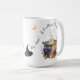 Este design apresenta a famosa citação do poema "Canção das Bruxas" de Shakespeare, assim como imagens de um caldeirão e chapéu, acentuadas com estrelas douradas, pentagrama e lua crescente. Todo o texto, fontes e imagens podem ser personalizados.