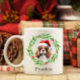 Uma caneca de café de Natal com uma aquarela Cavalier King Charles Spaniel e design de água de Natal. Adicione o nome dos cachorros à xícara de café e é a ideia perfeita de presente para o amante de cachorros que você conhece, ou você mesmo!