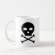 Caneca de café clássica, com um design contendo o desenho simples de um crânio e ossos cruzados. A cor do preenchimento e dos traçados (bordas) do crânio e dos ossos, bem como o tamanho e a localização, podem ser alterados para sua preferência na seção "Editar este design". Você pode colocar o design na frente.