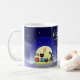 Coffee Mug de Café da Celebração de Neve de Edo-Neko: Esta trabalho de arte digital representa uma cena serena de inverno na terra de neve do Japão. No centro está uma tradicional "kamakura", meticulosamente trabalhada, onde os adoráveis animais de Edo-Neko se reúnem para celebrar este antigo costume de inverno. A cena é colocada em uma paisagem serena de neve, com flocos de neve em queda e tons suaves e brancos que transmitem a serenidade da paisagem nevada. O 'kamakura' brilha calorosamente de dentro, criando uma atmosfera convidativa. A trabalho de arte expressa a beleza do inverno e o sentimento de união e alegria compartilhada entre amigos ao celebrar a importância da tradição de Kamakura de adorar o deus da água e apreciar a natureza. É uma representação cardíaca de um momento precioso numa terra maravilhosa de inverno, onde amigos peludos celebram tradições culturais com reverência e camaradagem.