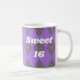 Um padrão brilhante e colorido de diamantes enfeita esta caneca Doce 16. O fundo roxo brilhante combina com o design brilhante dos diamantes. "Doce 16" aparece em ambos os lados da caneca e pode ser facilmente personalizado se desejar.