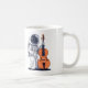 Uma caneca única com astronauta cartunista em um espaço branco tocando um violoncelo laranja-marrom vibrante contra um fundo preto sólido. Perfeito para os entusiastas da música e do espaço!"