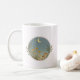 Um design circular sonhador apresentando um céu noturno suave com uma lua crescente, estrelas brilhantes e um jardim tranquilo de flores silvestres e cogumelos.