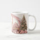 Uma bela aquarela, cena interior no Natal, em tons de rosa e verde.