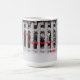 Caneca de cerca de piquete de neve com natal alegre e texto de feriado feliz