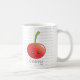 É uma cereja com a "cereja" escrita por todo o lado no fundo e debaixo dele.