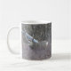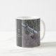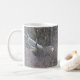 Caneca com legenda de Cervo Mulo Macho. Este grande cervo mulo macho estava procurando fêmeas nos arbustos ao longo do fundo de um riacho.