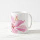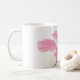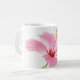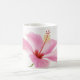 A colorida caneca de hibisco rosa me anima pela manhã quando estou bebendo meu café.