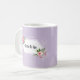 Caneca de chá de noiva com design floral em aquarela e texto personalizável e fundo roxo. As imagens de flores são fornecidas gentilmente pelo Freepik.