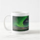 O Aurora Borealis espanta sobre o rio Knik no Alasca. Também tem texto que diz "Alaska Cortain Call" por Ted Raynor