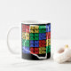 O design de caneca de café que diz "Chandler" é preto e colorido com tinta vermelha, amarela, verde, azul e branca. Ele o torna ideal para café ou chá de manhã. É seguro para micro-ondas e lava-louças.