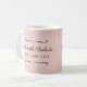 Um presente precioso para uma empresária chefe. Se uma mulher em sua vida lançou um novo negócio, aqui está o presente ideal para o feriado ou aniversário do negócio... uma caneca de café personalizada com o nome dela em tipografia cursiva elegante com o título "Chefe CEO" logo abaixo. Sobre um delicado fundo rosa bege, nossa caneca feminina Chefe CEO apresenta sobreposições de glitter rosa bege na parte superior e inferior para um brilho adicional. Você pode facilmente revisar o texto usando o modelo de personalização.