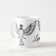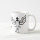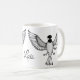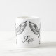Personalize esta caneca que caracteriza um chickadee tampado preto tirado no pointillism estilizado reminiscente do trabalho tradicional do scrimshaw. Simples e elegante, trabalhos artísticos originais pelo artista nativo S. Coxwell de Alaska