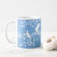 A porcelana azul e branca é, há muito tempo, minha favorita. Não tenho certeza de onde começou, mas lembro-me de admirar as pequenas peças de Wedgwood Jasperware que a minha mãe e as minhas avó tinham em exposição. Há alguns anos, pediram-me que ajudasse a decorar o meu edifício da igreja para uma conferência que ali se realizava. Eu peguei uma grande canvas e criei uma pintura acrílica com duas pombas brancas contra um fundo azul - inspirada pela porcelana azul e branca que eu tão admirava. Uma pomba se alinha em um galho florescente onde sua companheira se senta esperando. Espero que esta cena tranquila vos preencha com uma sensação de paz e repouso e o transporte para aquela maravilhosa época do ano em que o inverno dá lugar à primavera.