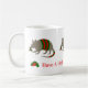 Enjoy your favorite holiday beverages in this festive Christmas mug featuring a trio of armadillos enjoying a tasty winter treat. Caption on mug: Have A Holly Jolly Christmas!