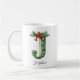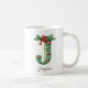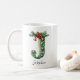 Caneca De Café Christmas Holly & Bells Letter J Personalized Name