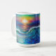 Invite the calm of the sea into your home with this surreal seascape piece, where a beautiful blend of blue hues and opal and jade colored waves meet the warmth of a dreamy sunset.