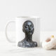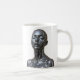 This sleek mug showcases a futuristic female android with a polished black-chrome finish, eyes gently closed in a moment of calm and introspection. The high-gloss metallic texture and sculptural lines bring a striking balance between strength and serenity. Perfect for fans of sci-fi, robotics, and digital minimalism, this mug makes a bold statement in any modern workspace or art-inspired kitchen.