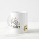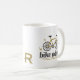 Monograma de caneca de café ciclista. Nome e Monograma em frente à alça.