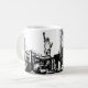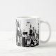 Esta caneca caracteriza a colagem dos ícones da Nova Iorque, da ponte de Brooklyn, do quadrado do tempo, da estátua da liberdade e de Wall Street famosos.