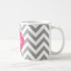 Caneca De Café Cinza Dk Lg Chevron Raspberry Quatrefoil 3 Monogra