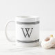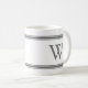 Cinza monograma listrada caneca personalizada. Monograma da cinza em texto clássico em bloco dentro de painéis externos separados por cinzas. Fundo branco.