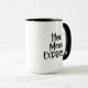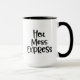 Uma caneca de café preta e branca com "Hot Mess Express" nela.
