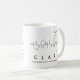 Clare soletrado em aminoácidos como C L A R E (ácido glutâmico cisteínico Leucina Alanina Arginina) numa caneca para o cientista em si.