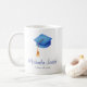 Personalize caneca bonita com uma ilustração de um boné de formatura azul com um punho de ouro. Personalize o texto com suas próprias informações. Ilustrada e projetada por Patricia Alvarez.