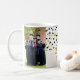 Classe personalizável de modelo de foto de caneca de graduação 2025 com padrão de confete preto e ouro.