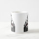 Who's there? It's Dracula! This iconic Classic Peeking Vampire Mug features a vintage horror style illustration of a bloodsucker peering over castle battlements with intense red eyes. A perfect, high-contrast, black and white spooky gift for Halloween or year-round gothic decor!