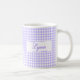 Bring a touch of timeless, rustic charm to your morning coffee or afternoon tea! This personalized mug features a vibrant purple and white gingham (checkered) pattern that evokes feelings of cozy farmhouse kitchens and sunny summer picnics.