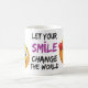 Deixe seu sorriso mudar o mundo, feito com um design clássico, esta caneca promete durabilidade e prazer cotidiano para seu café matinal, chá ou qualquer bebida quente.