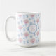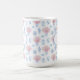 Padrão de cor da água, azul e rosa, elegante e bonito, mostrado aqui num design de caneca e que inclui um monograma de letras solteiros. Os potes de gengibre / Sakura, originalmente pintados em aquarela pelo seu verdadeiro, são digitalizados e transformados em um padrão repetitivo.