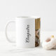 Esta caneca apresenta a pintura "óleo na canvas" de John William Waterhouse, "Cleopatra" (1888), rainha ptolémica do Egito com texto "Cleópatra" (personalizável/removível). Waterhouse (1849 - 1917) era um artista de pré-Raphaelite da Inglaterra.